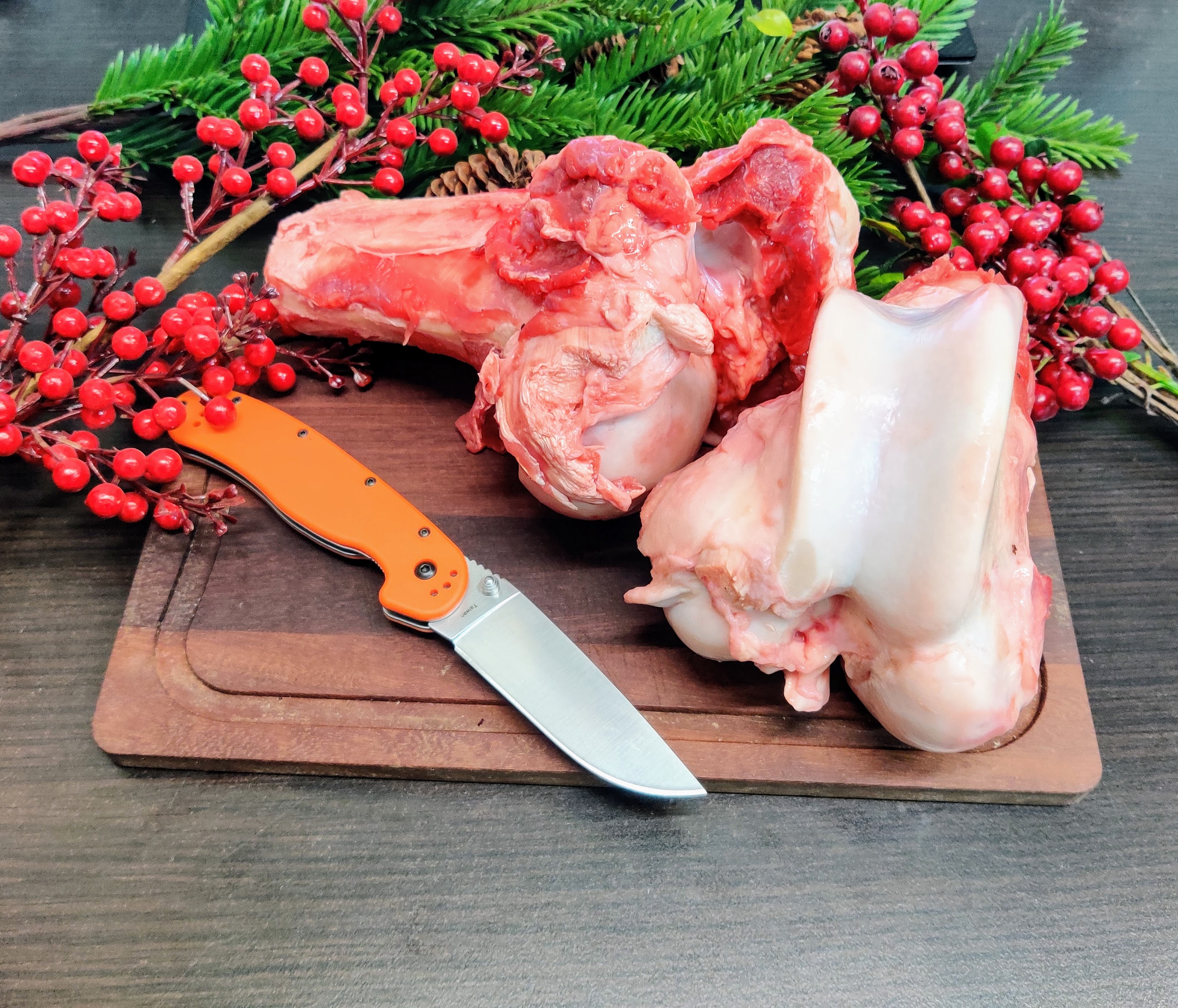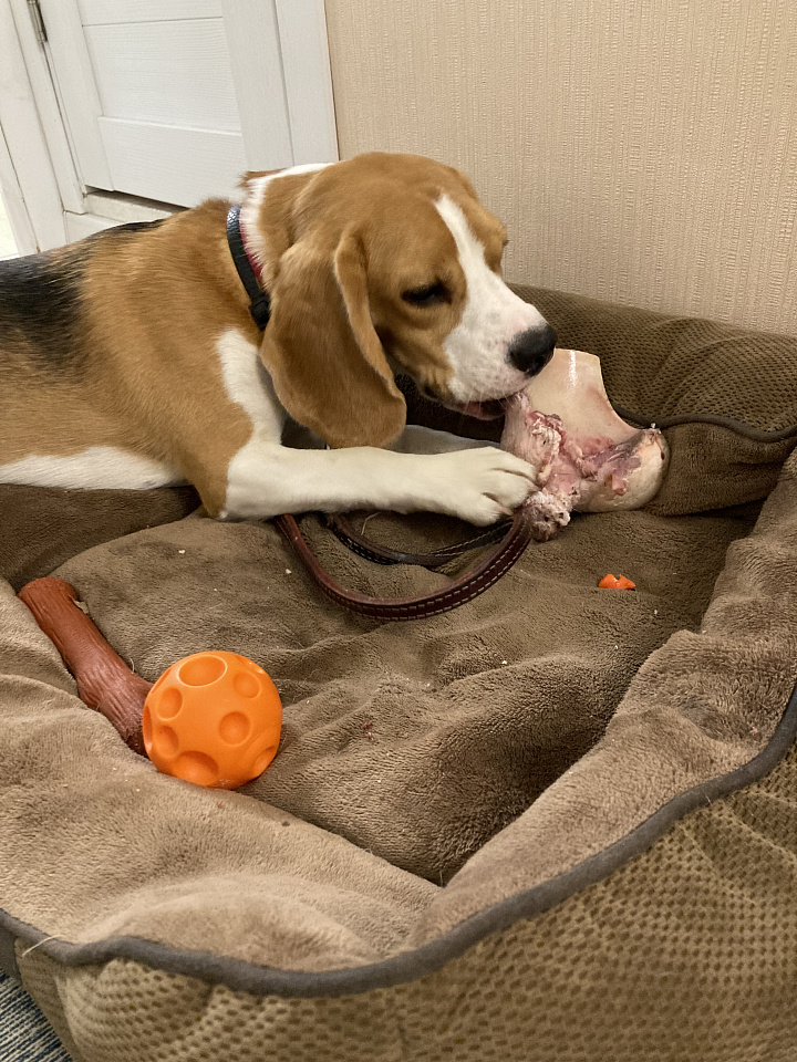 Идеальные кости для собаки! Прекрасная альтернатива говяжьим мослам, на которые у нас аллергия. В этот раз головки костей были распилены вдоль, что дало возможность собе сразу добраться до самого вкусного)
