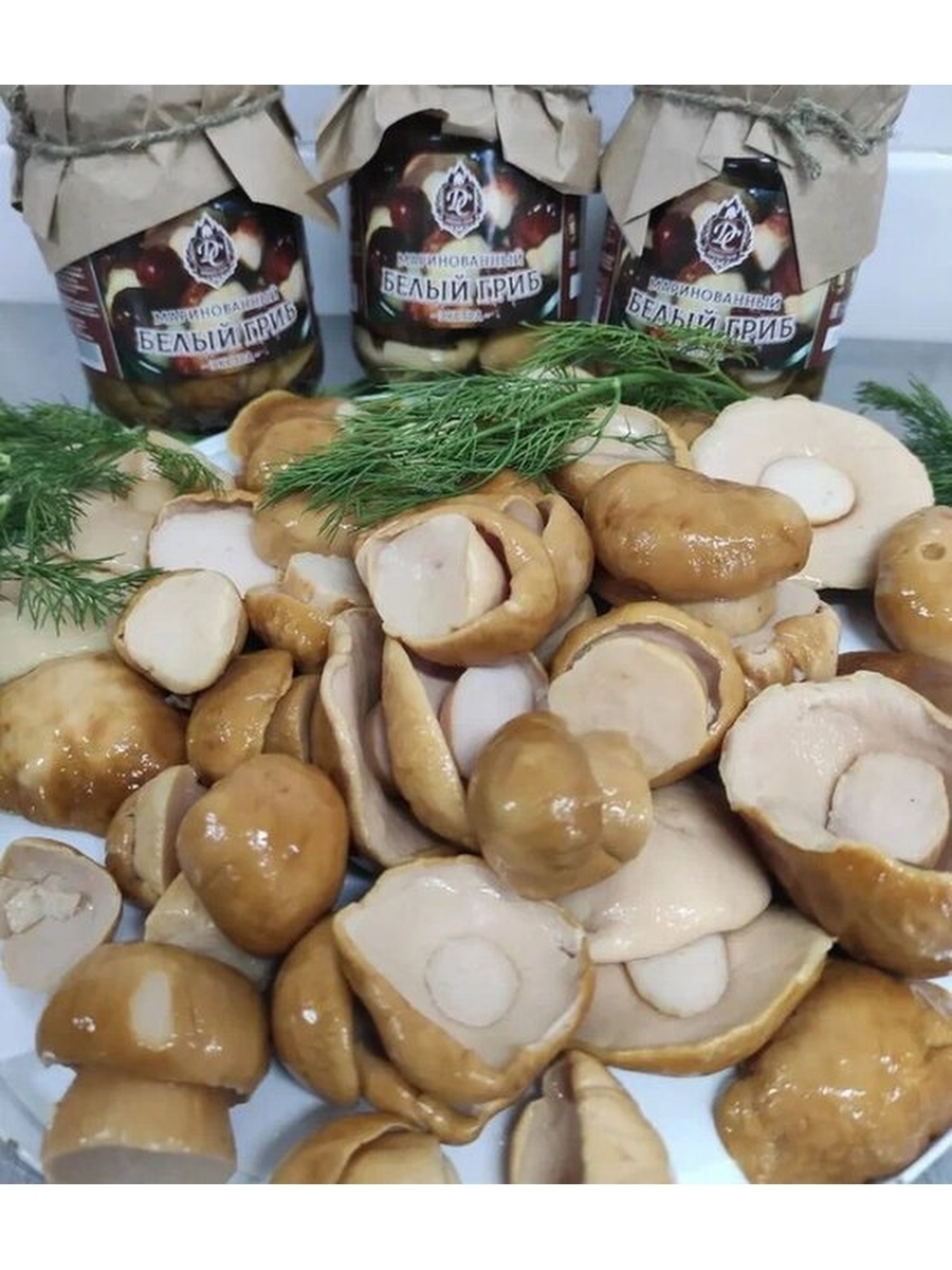 Состав: белый гриб солено-отварной, вода, соль, сахар, уксусная кислота, лавровый лист, перец черный горошек