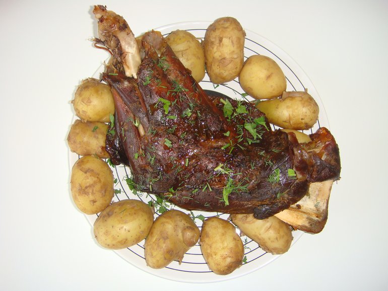 - Бифштекс из косули с морковным кремом и мочёной чёрной смородиной